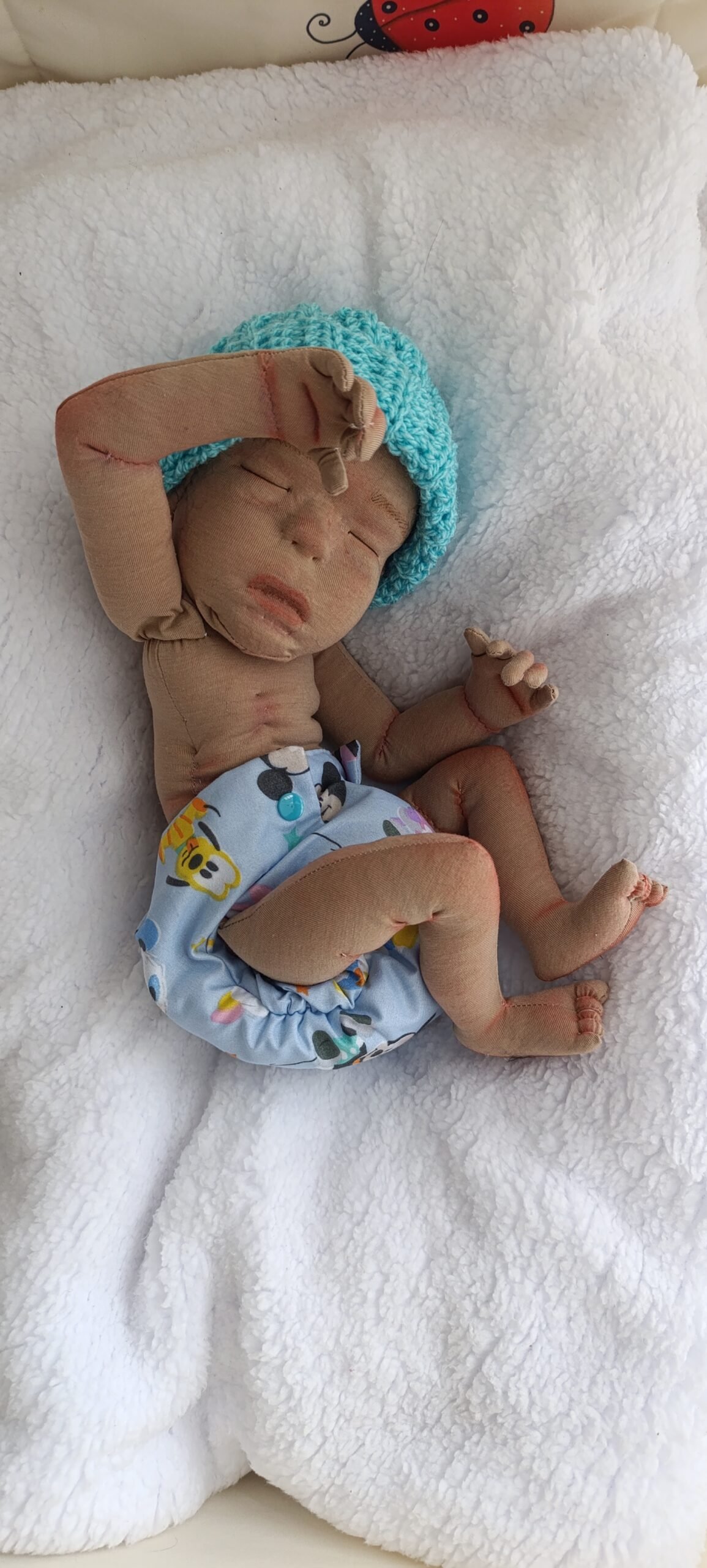 Bebe que asemeja un prematuro sietemesino, demasiado tierno ideal, enseñanza, colección o juego.